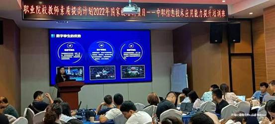 7月9日上午,闫俊丽教授在开展VR/AR教学资源开发的讲座,各个学员都在认真的倾听。