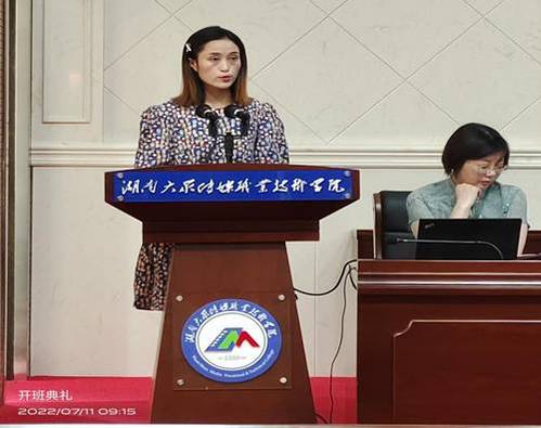 学员代表凤凰县职业中专学校满美芳上台发言,她对湖南省教育厅及湖南大众传媒职业技术学院组织的本次培训表示感谢,并作为学员代表郑重承诺,在接下来的十天学习中,严格遵守培训规章制度,认真完成培训作业,以饱满的热情和勤恳扎实的学习态度投入到学习中。