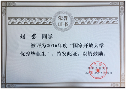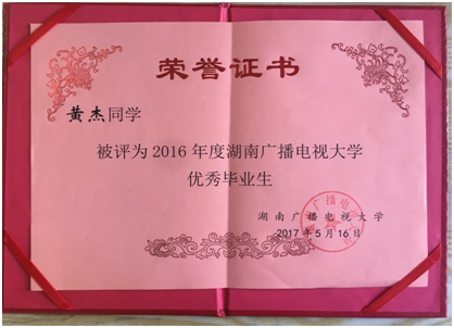 (继续教育中心供稿)国家开放大学16年度优秀毕业生评选结果刚刚公布:全市仅5人获得此殊荣,我院13级农民大学生刘芳(班主任谭志慧老师)获得国家级优秀毕业生称号,黄杰(班主任程知老师)获得省级优秀毕业生称号,特此报喜!